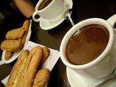 Min favorit heter Chocolate Suizo, en väldigt katalansk varm choklad som är extra tjock och toppas med hemgjord grädde. Man kan ta den med churros, croissants eller kakor.