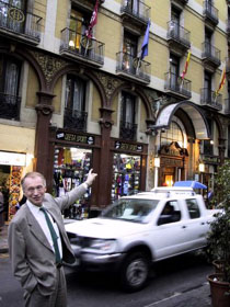 – HC Andersens skildringar från Hotel Oriente-balkongen, där han satt med sin vän Kristian Collin passade så perfekt in på det verkliga livet, säger författaren och pekar upp mot hotellfasaden. Under något ögonblick tycks vi se HC Andersen sittandes på en av balkongerna, blickandes ut över det omväxlande gatulivet på Las Ramblas.